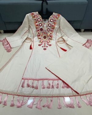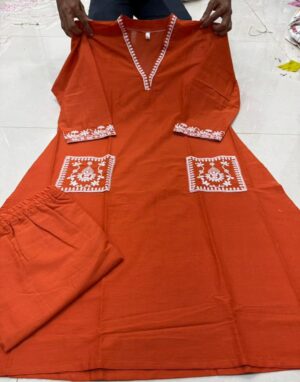 Festival Special Embroidered Cotton Kurti Pant Set”