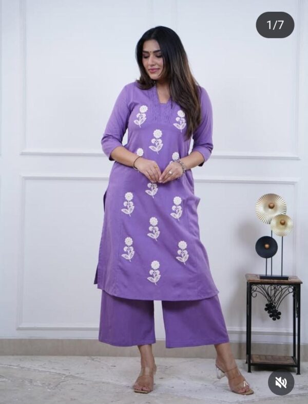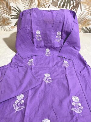 Step into the festivities with grace and charm in this premium Kurti Pant Set, designed to bring out your inner elegance. Crafted from luxurious Cotton 60-60 fabric, the kurti showcases exclusive heavy embroidery work that adds a vibrant and eye-catching touch. The matching pants complete the look beautifully, creating a perfectly coordinated outfit that’s ideal for festivals, parties, or special occasions.