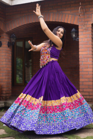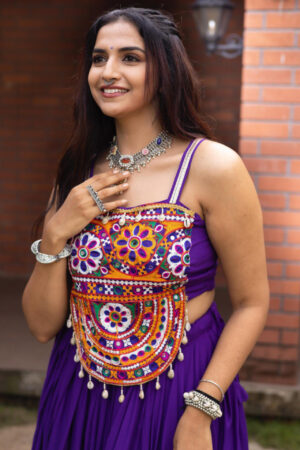 _*Flaunt ethnic elegance with this colorful Navratri choli set, A perfect pick for dandiya nights, this Navratri outfit is designed with multicolor panels and Pure Unn Kutchhi Work Fancy Top Worked With Real mirrors.*_ ✨🌸