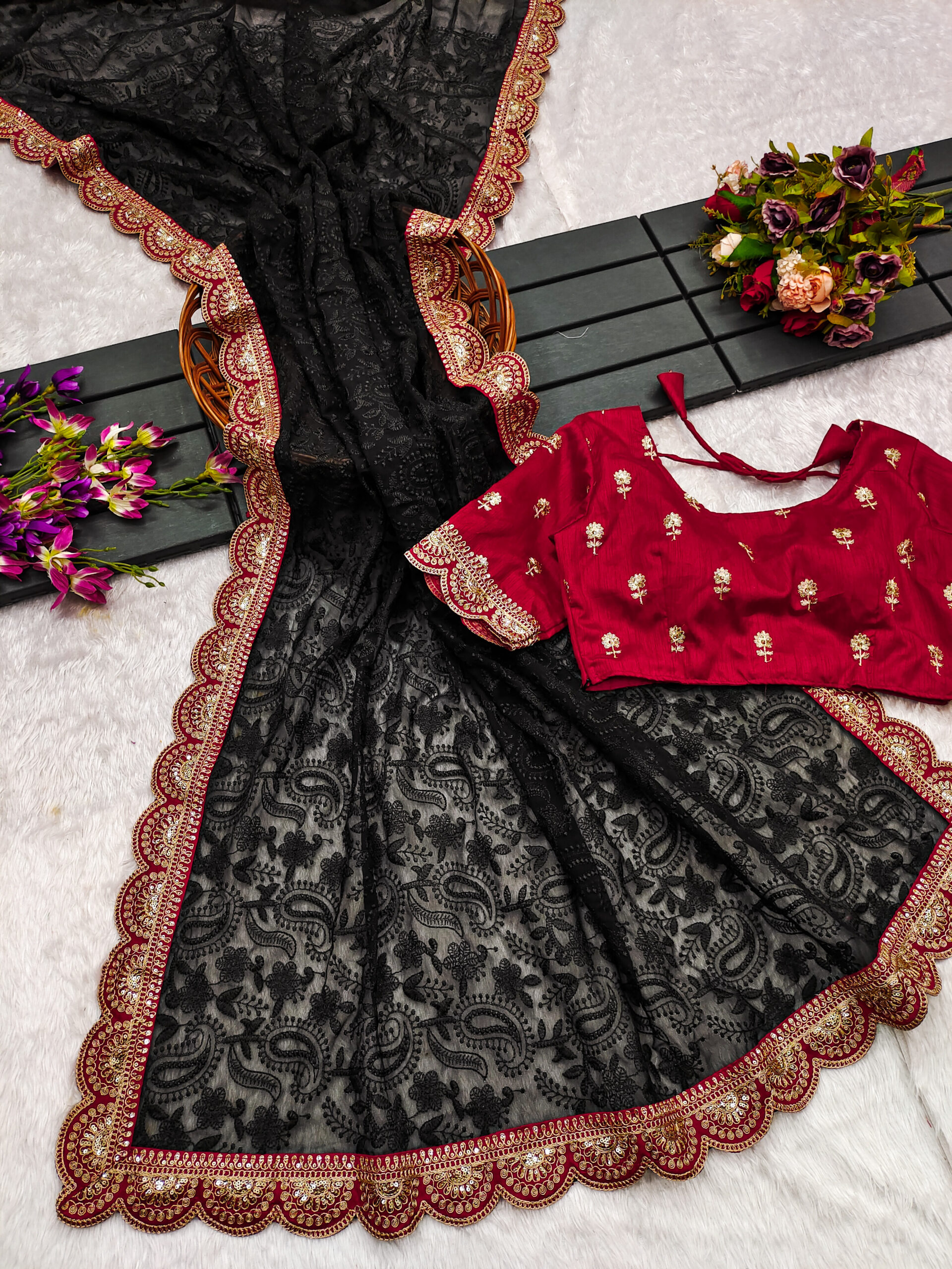 Add a touch of elegance and tradition to your wardrobe with this Heavy Georgette Chikankari Saree. Perfect for weddings, festive occasions, and grand celebrations, this saree combines traditional hand embroidery with modern embellishments to create a timeless ensemble.