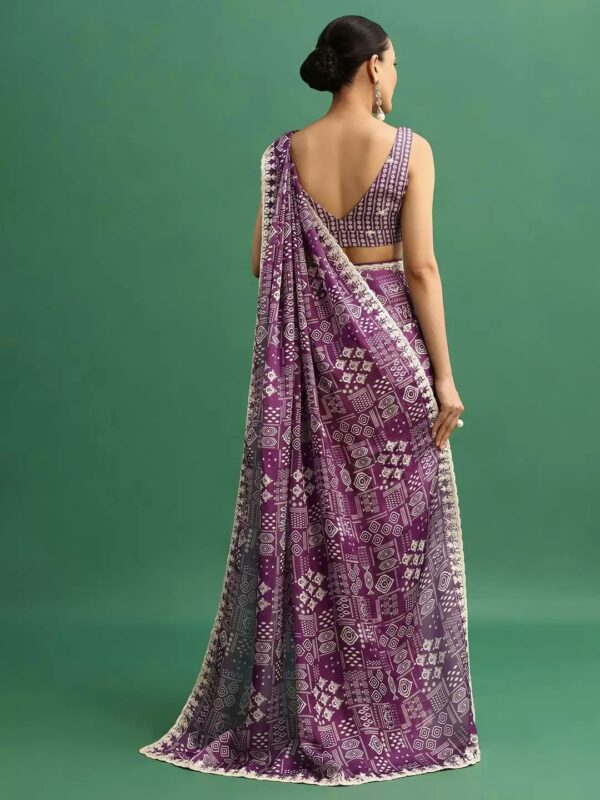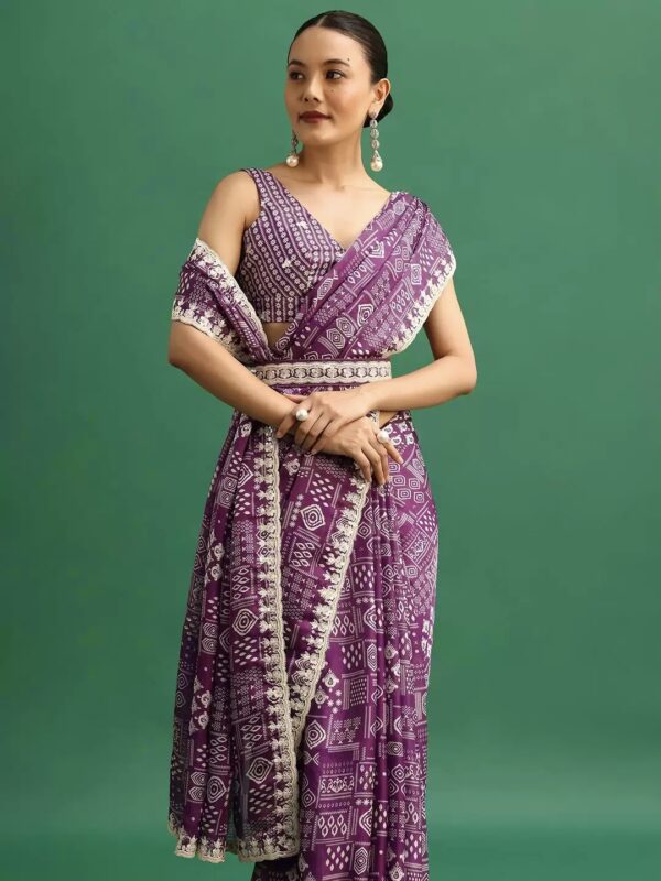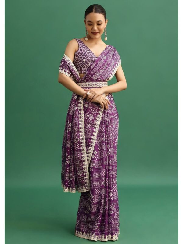 Drape yourself in the beauty of tradition with a touch of modern artistry through this Premium Chinon Silk Saree. Crafted with elegance and sophistication, it blends digital prints with embroidery, codding, and sequins work, making it a perfect outfit for weddings, festive occasions, and grand celebrations.